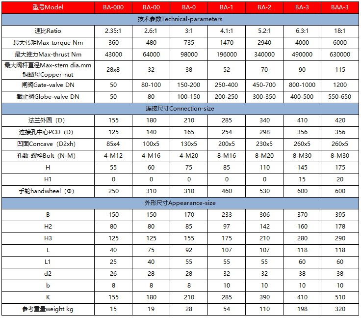 BA型多回轉手動傘齒輪蝸輪箱